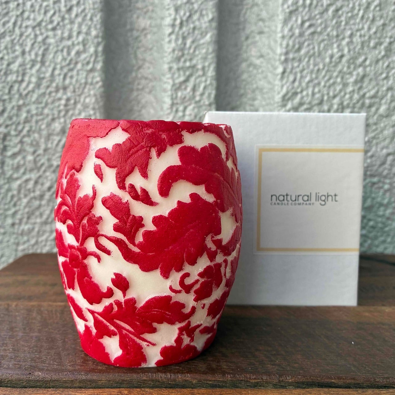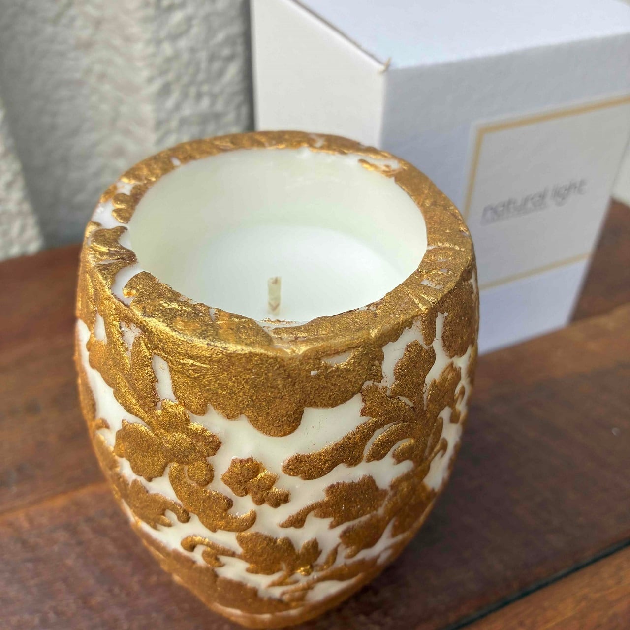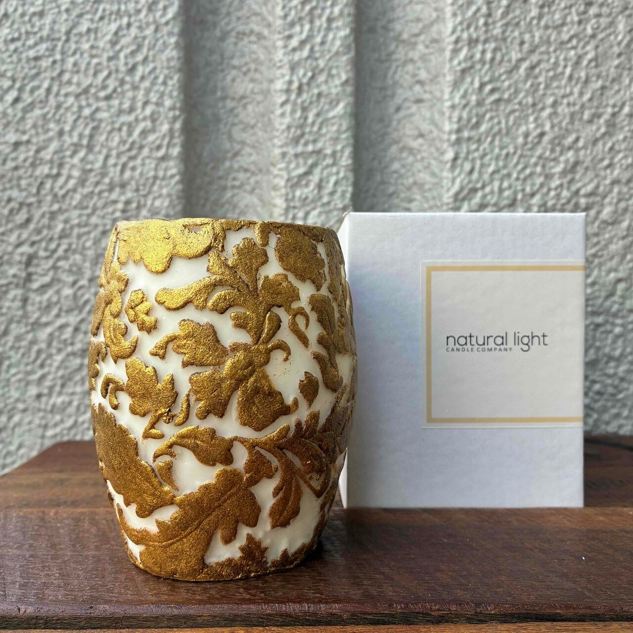 キャンドルの表面には、大きめの葉っぱがデザインされている可愛らしいキャンドルです。
