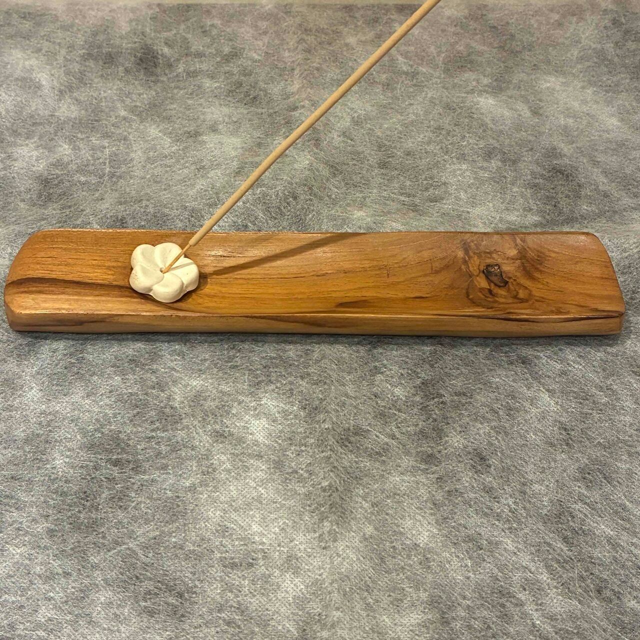 小さなフランジパニ(プルメリア)がついている、木の温もりを感じてもらえるお香立てです。