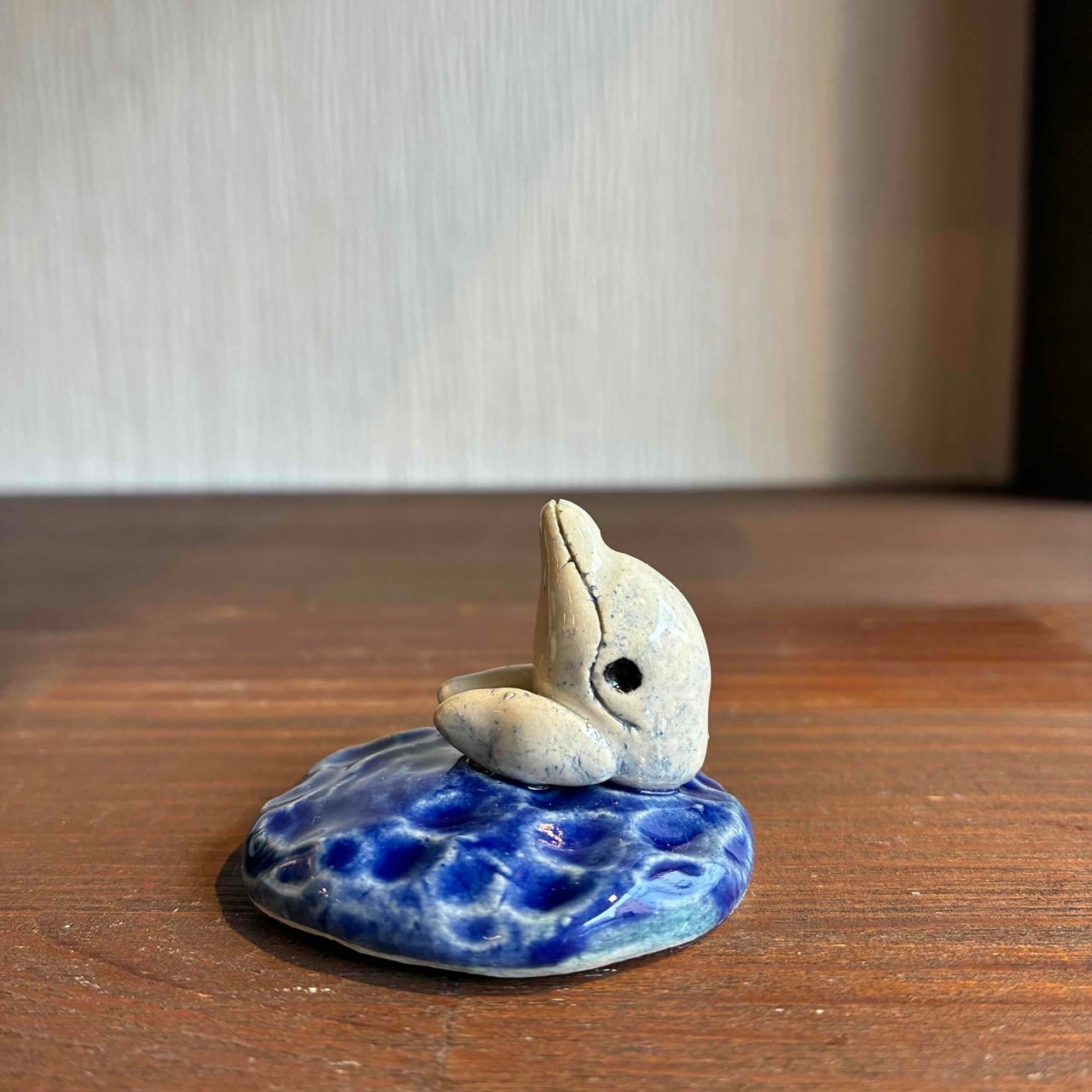 「癒海工房」吉田絵美さんが作る、小さなイルカのお香立て。