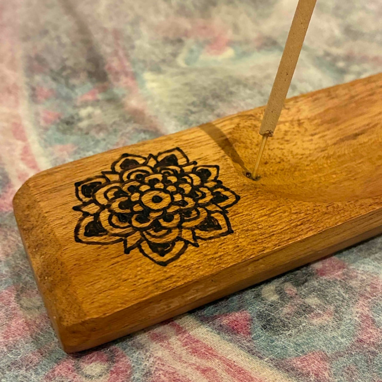 曼荼羅の模様はそれぞれ違っていて、また木の雰囲気(木目や色)も一つずつ違っている為、誰とも被らないたった一つのお香立てです。