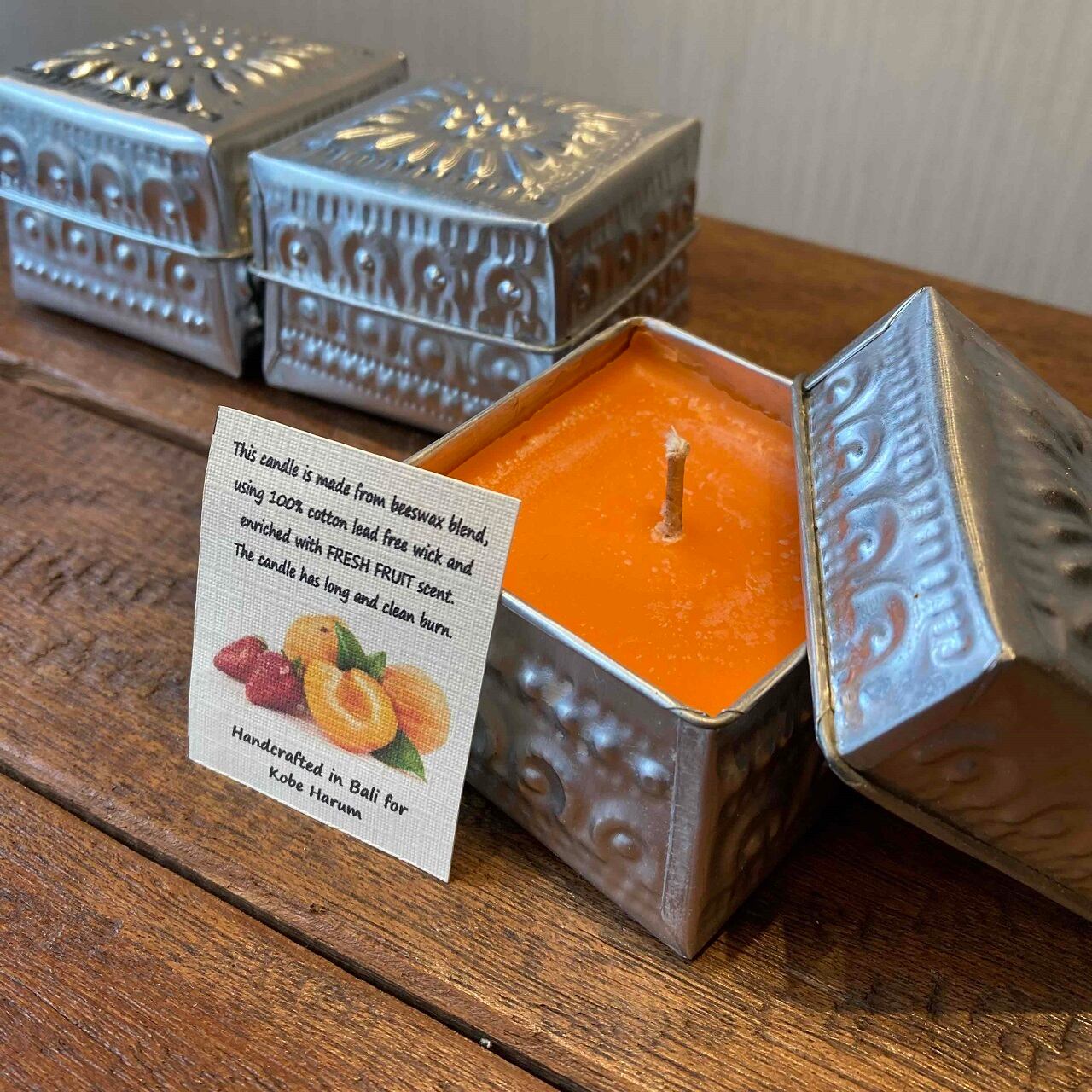 ※バリ島では、お供え物を運ぶときに使われる竹で編んだ「ソカシ」というのがあります。こちらは、アルミカップで作られたソカシの中にキャンドルが入っています。