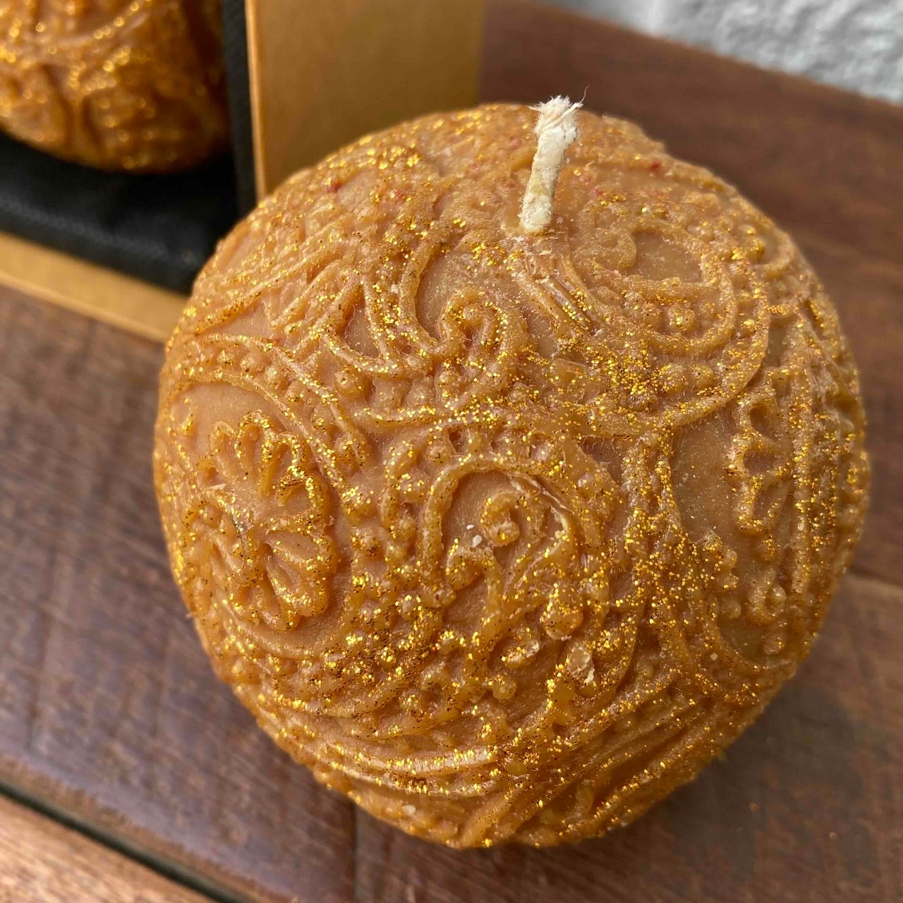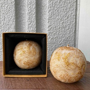 ペイズリーの柄が全体に施され、さらにシルバーのグリッターをコーティングしたオシャレなキャンドル。コロンとした球体の形も可愛いキャンドルです。
